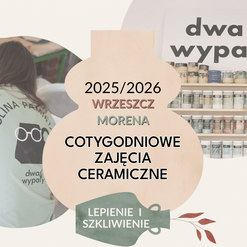Jeśli chcesz być częścią pracowni Dwa Wypały i co tydzień lepić lub toczyć z nami, zapraszam Cię do zapisu na na zajęcia ceramiczne. W cenie zawiera się glina, szkliwa, wypał. Cykl zajęć to 4 spotkania 🙂